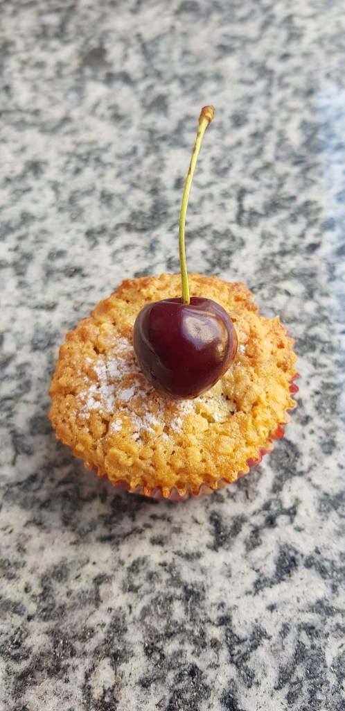Alle Zutaten miteinander vermischen, den Backofen auf 180 °C (Umluft) vorheizen, ein Muffinblech mit Papierförmchen auslegen und den Teig mit einem Löffel einfüllen. Ca. 20 Minuten backen, herausnehmen und vernaschen…