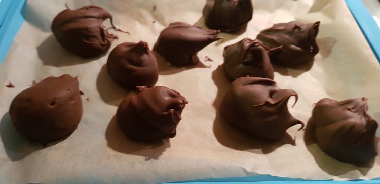 Als ersten Schritt, empfiehlt es sich die Haselnusscreme in kleine „Nockerl“ zu portionieren und einzufrieren. Seit nicht so sparsam, denn Schokolade bzw Haselnusscreme macht glücklich- sagt man 🙂