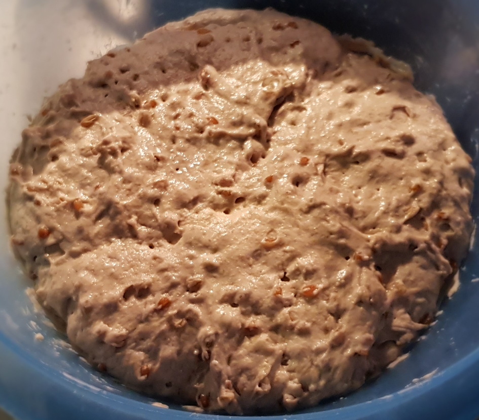 Ach du liebe Not… ich hab es mir viele Wochen lang vorgenommen und trotzdem habe ich es immer wieder hinaus geschoben und vorgestern war ich motiviert und mutig genug und habe es endlich gewagt und hier ist es eine Kombination aus 2 Sauerteigen zur Lockerung, 3 Mehlsorten und 6 verschiedenen Körner.