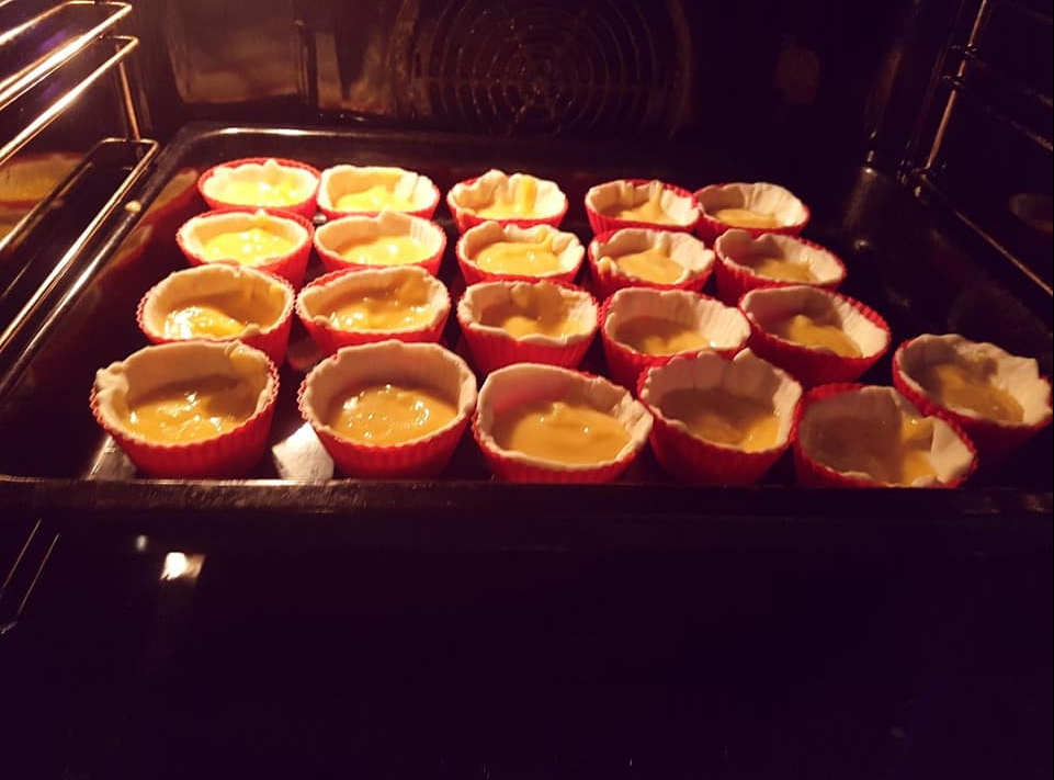 In ein mit Blätterteig ausgelegtes Förmchen kommt eine Füllung, die im Wesentlichen aus einem Milchpudding plus Eigelb besteht. Hört sich einfach an, perfekt zum selber backen ist es auch. Vor allem, wenn man fertigen Blätterteig nimmt. Was übrigens auch keine Schande ist, denn Blätterteig selber machen ist eine sehr aufwendige Angelegenheit.