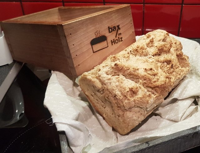 Zum Glück habe ich etwas Mehl, Weinsteinpulver und Buttermilch zu Hause gehabt und habe mal eben schnell ein Brot zusammengerührt, das keine Gehzeit hat und nur 40 Minuten gebacken werden möchte.