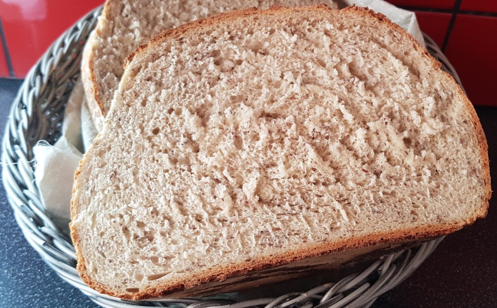 Heute habe ich ein Brot für euch aus Weizenmehl Typ 0 und Leinsamen.