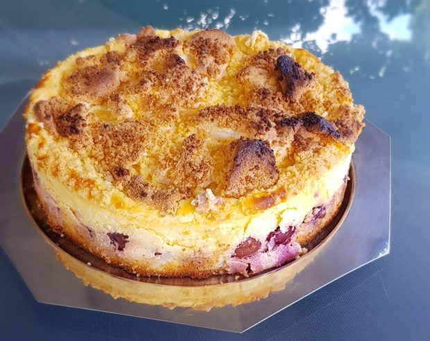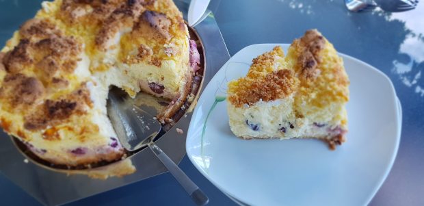 Kirsch- creamy Cheescake mit Baiser-Mürbteigstreusel und das Beste ist… er gelingt immer.