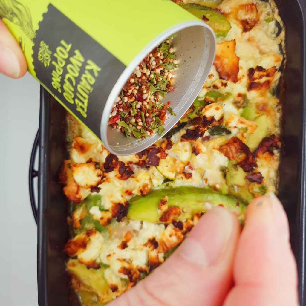 Nachdem backen mit dem Kräuteravocadotopping finishen!