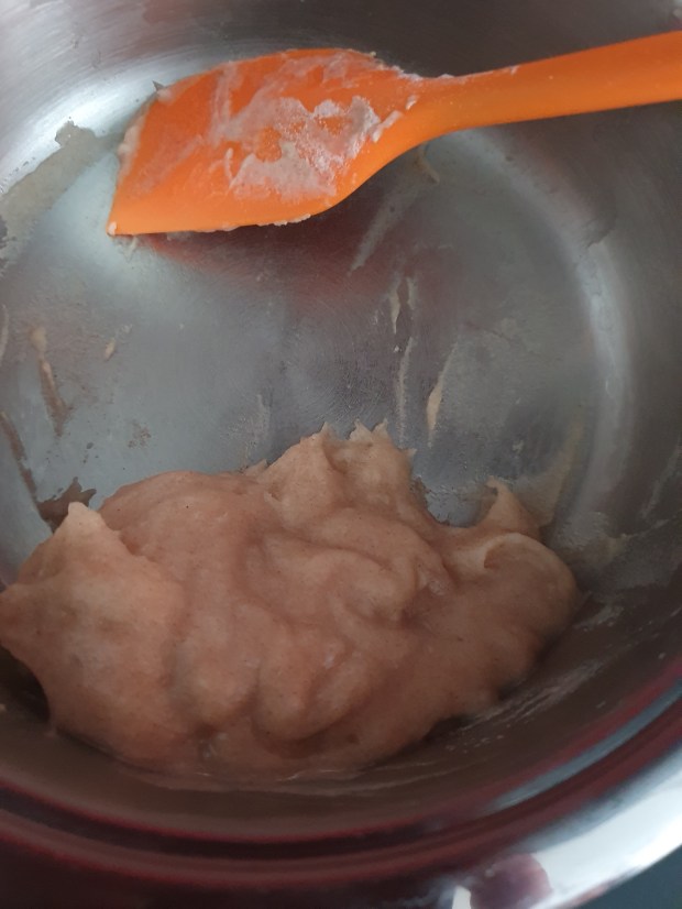 Das Mehl und das Wasser aufkochen bis eine Puddingartige Konsistenz hat.